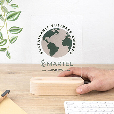 We hebben kristallen trofeeën die worden gepersonaliseerd door lasergravure op het oppervlak, en andere modellen die worden gepersonaliseerd door full colour print direct op het oppervlak. Meer details vind je in de productgalerij en op de productpagina's.