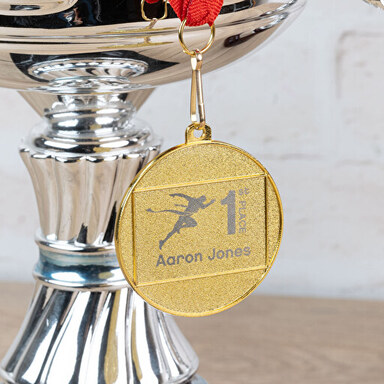 Voor school- of volwassenentoernooien, amateur of professioneel, team- of individuele sporten. Of het nu gaat om voetbal, basketbal, handbal, atletiek, zwemmen, tennis, etc. Hier kun je een gedenkplaat of sporttrofee voor de kampioen (of kampioenen in het geval van een team) personaliseren. Je kunt het schild of logo van de club toevoegen, de naam van het team of toernooi, het jaar of de datum van de viering, etc.